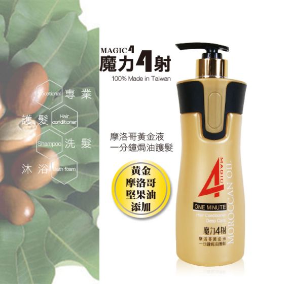 摩洛哥堅果油極強的滋養成分及添加複合配方達到潤澤效果,能瞬間滲入使秀髮快速滑順光澤、修護受損毛躁髮絲,保持水油平衡、強化髮質抵抗力、預防各種環境的傷害。