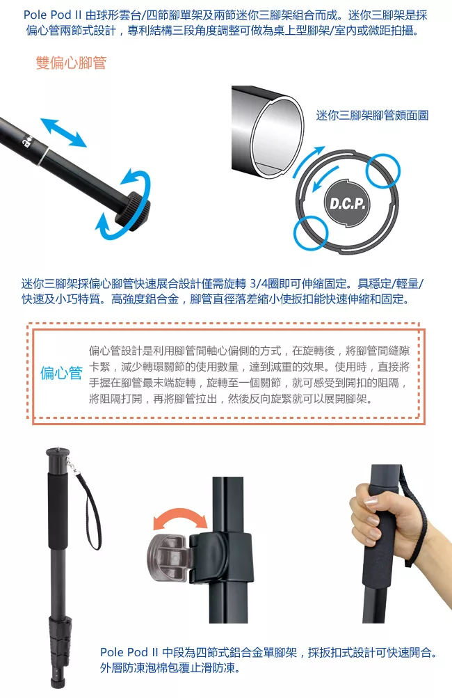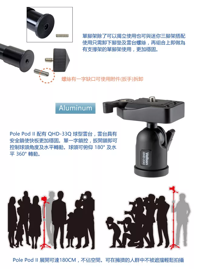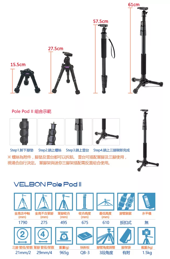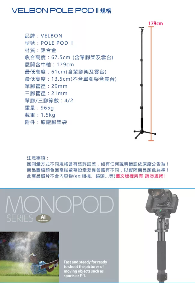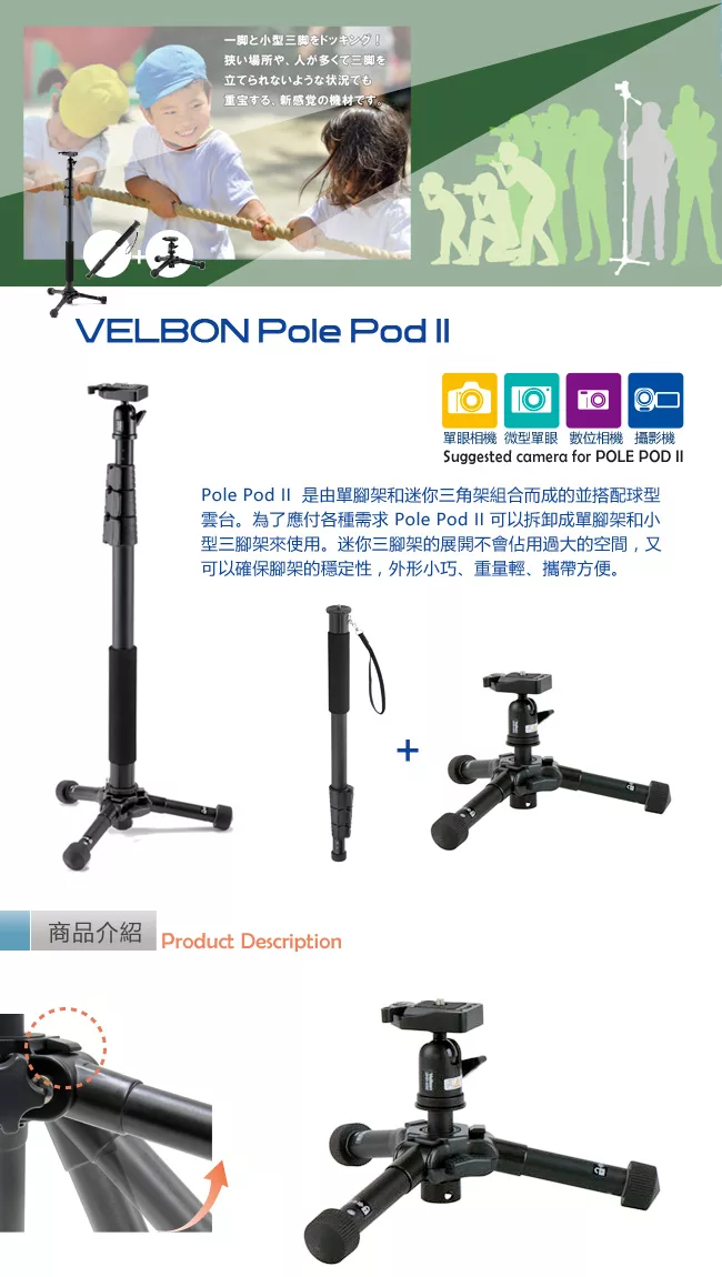 博客來e-coupon Velbon POLE POD EX II 單腳架組(含球型雲台)