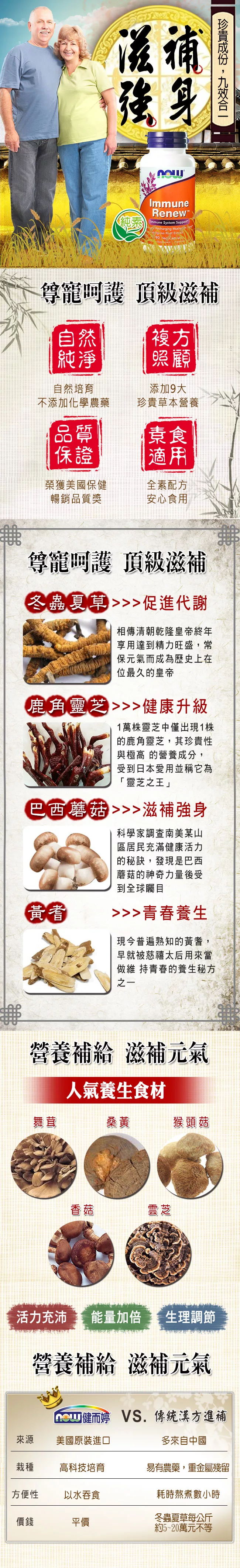 特別添加珍貴冬蟲夏草菌絲體、黃耆精華,與靈芝等菇類合用,九效合一。