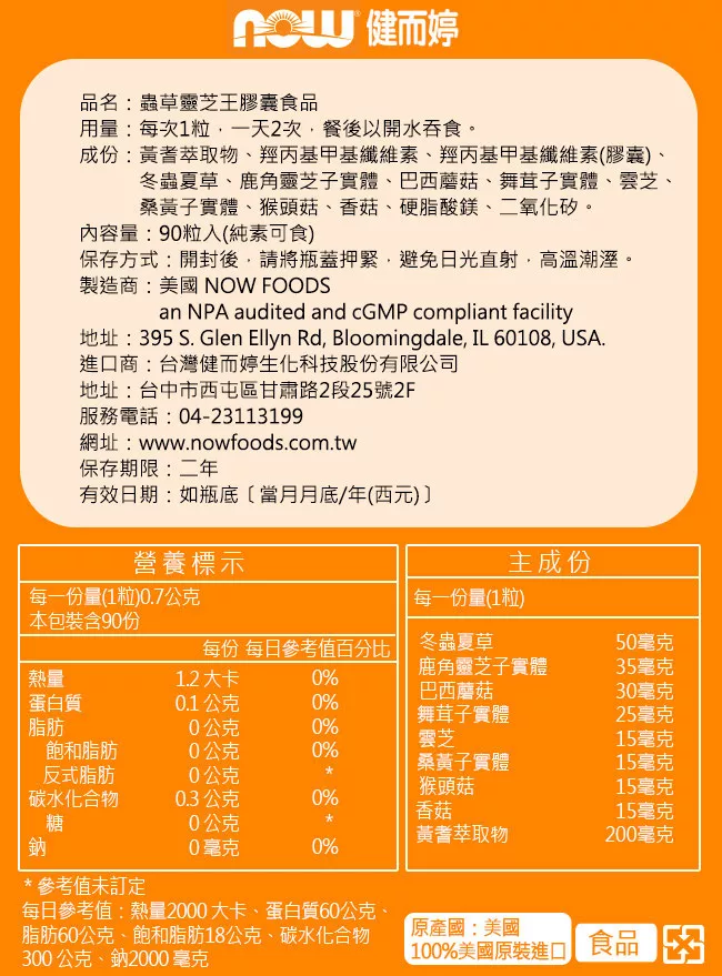 NOW健而婷-蟲草靈芝王(90顆-瓶) 評價